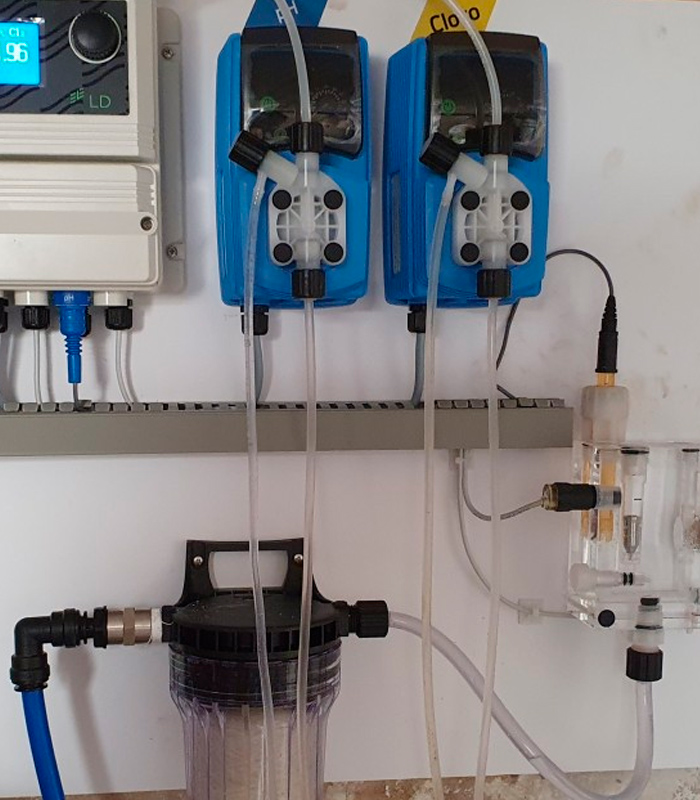 - Kit de instalación estándar completo compuesto por: filtro de pie y válvula de inyección, tubo de succión de PVC, tubo de impulsión de PE y soporte de fijación.